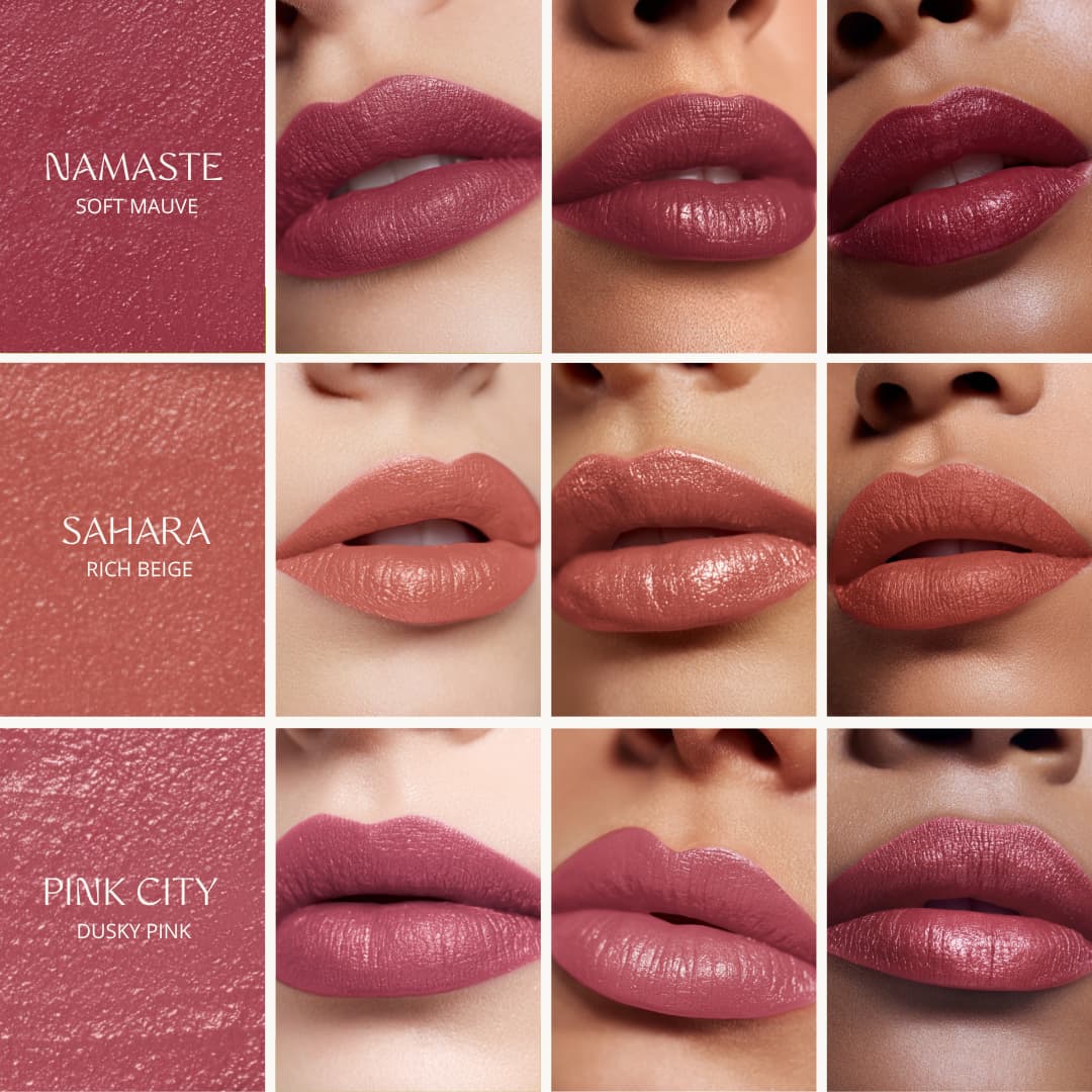 BEST SELLER LIP SET is NAMASTE, SAHARA, PINK CITY