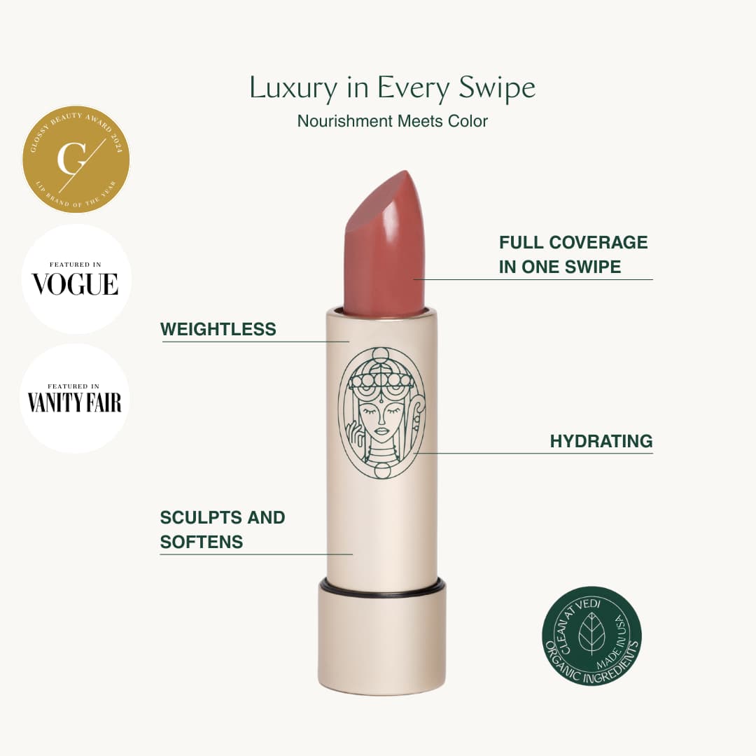 A moisturizing satin lip crème, like our VEDI Satin Lip Crème, is ideal for mature lips because it's formulated with nourishing ingredients like avocado oil, shea butter, and vitamin E that help support smoother-looking, more comfortable lips. The delicate nature of lip skin benefits from a lightweight, creamy texture that provides hydration without heaviness, making it suitable for mature lips that need extra care and comfort.